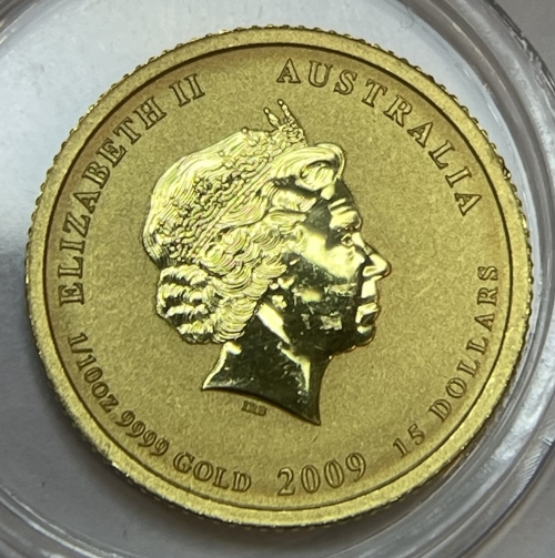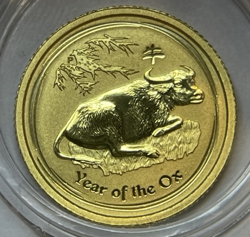 Золотая монета 15 долларов "Год Быка" 2009 г., Австралия, Лунный календарь, Au 9999, 3,11 г.