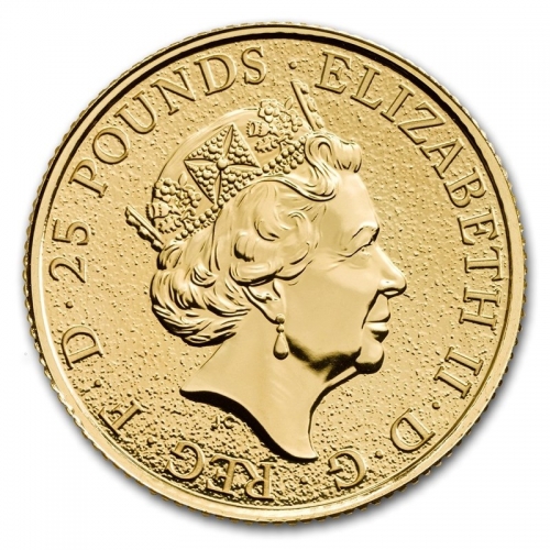 Золотой Королевский Гриффон это вторая золотая монета в серии "Звери королевы" Монета 2017 года номиналами в 100 и 25 фунтов и весом в 1 и 1/4 тройскую унции. Монета продолжает серию десяти геральдических статуях, связанных с родословной королевы Елизаветы II. Монета Королеский Гриффон Эдварда III состоит из геральдического зверя, находящегося над щитом, на котором изображены знаки связанные с королем Эдуардом III. Щит стоит по центру монеты с циркулирующей надписью на левой стороне - GRIFFIN OF EDWARD III. Монета разработана Королевским монетным двором Великобритании, художник Джоди Кларк. Вес 1/4 унции составляет 7,8 грамма и диаметром 22 мм, при номинале 25 фунтов. Чистота золотых монет 999,9.